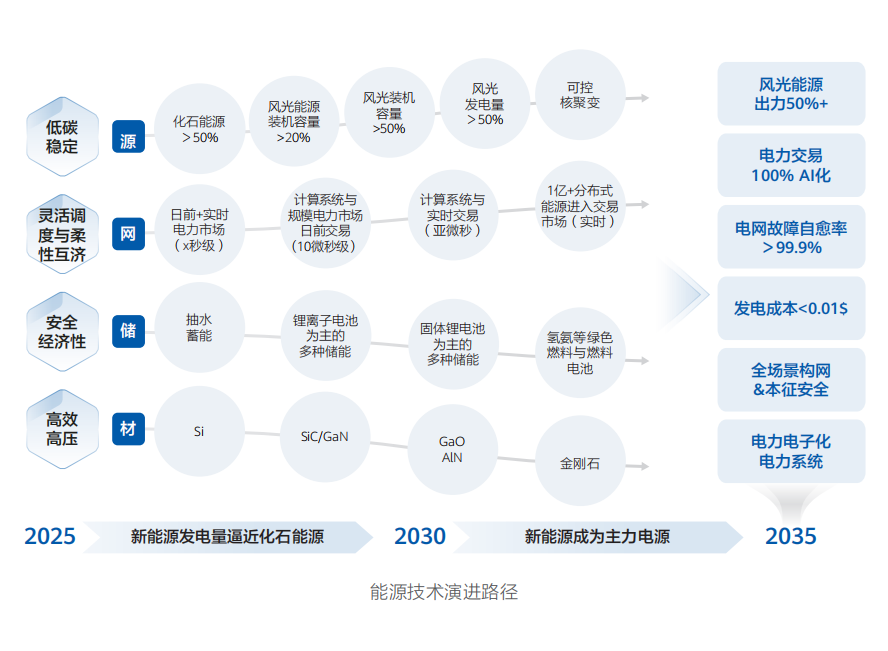 2035年的电力系统,已经进化为一个动态平衡、高度智能化的能源生态系统,实现了从“保障供电”到“引领低碳发展”的跨越。当夜幕降临,光伏板启动自动清洁作业、风机精准调整叶片角度、储能站有序储备电力,电动车依托智能调度有序补能,数据中心同步启动“算电”动态调节,整个电力系统如同有机生命体般高效运转,为可持续发展的未来提供坚实支撑。
