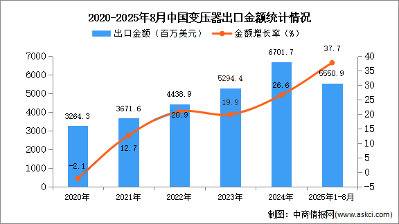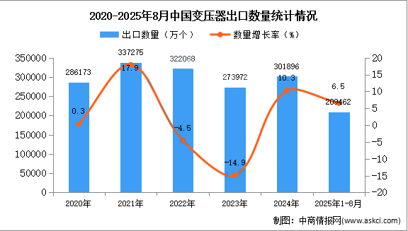 在这场全球“变压器荒”中,2025年1-8月,中国变压器出口大增51.42%!