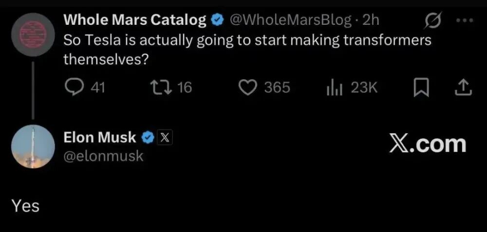 社交媒体上,网友问及“特斯拉真要开始自己做变压器了”时,马斯克明确给出肯定的答复