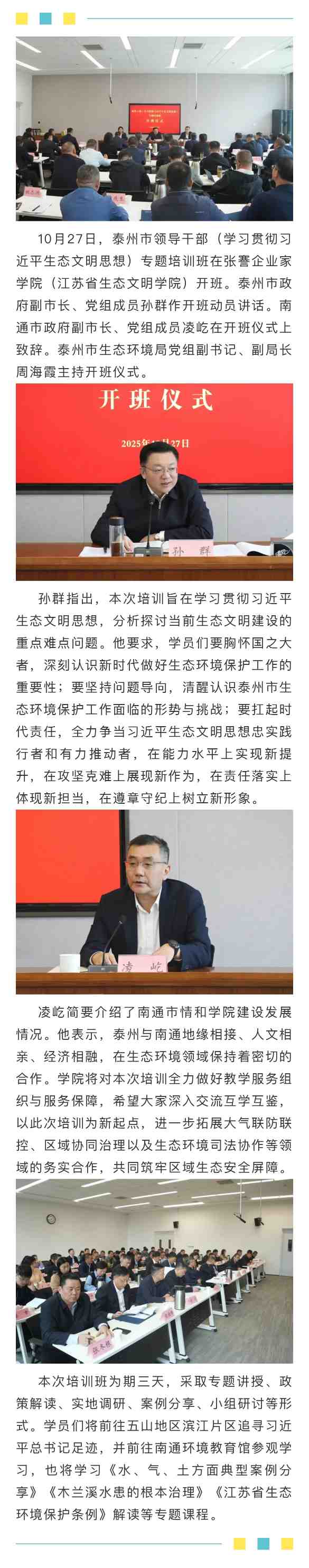 泰州市领导干部(学习贯彻习近平生态文明思想)专题培训班开班