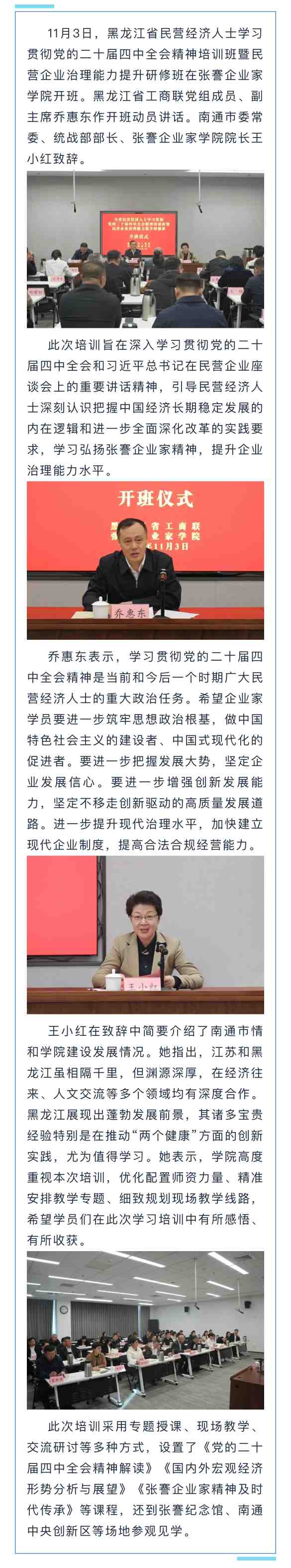 黑龙江省民营经济人士学习贯彻党的二十届四中全会精神培训班暨民营企业治理能力提升研修班开班