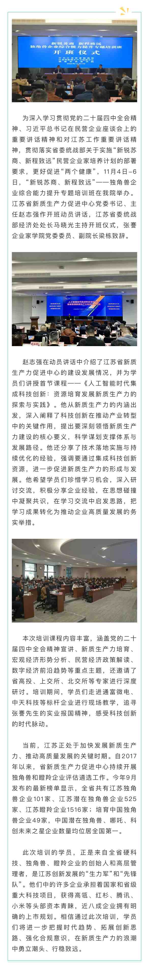“新锐苏商、新程致远”——独角兽企业综合能力提升专题培训班在我院开班