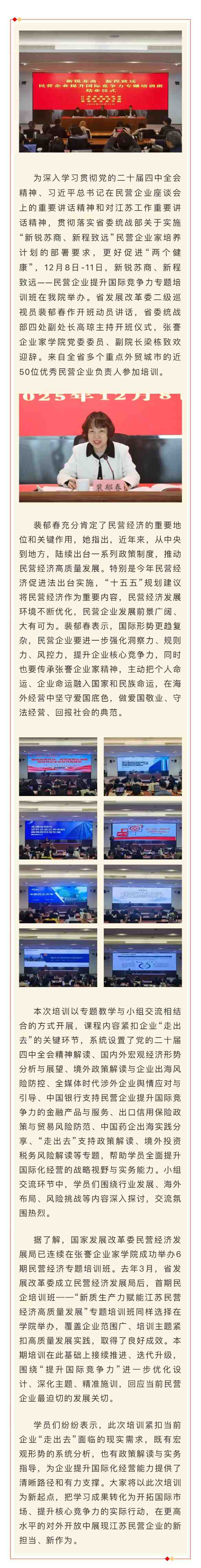 新锐苏商、新程致远——民营企业提升国际竞争力专题培训班在我院举办