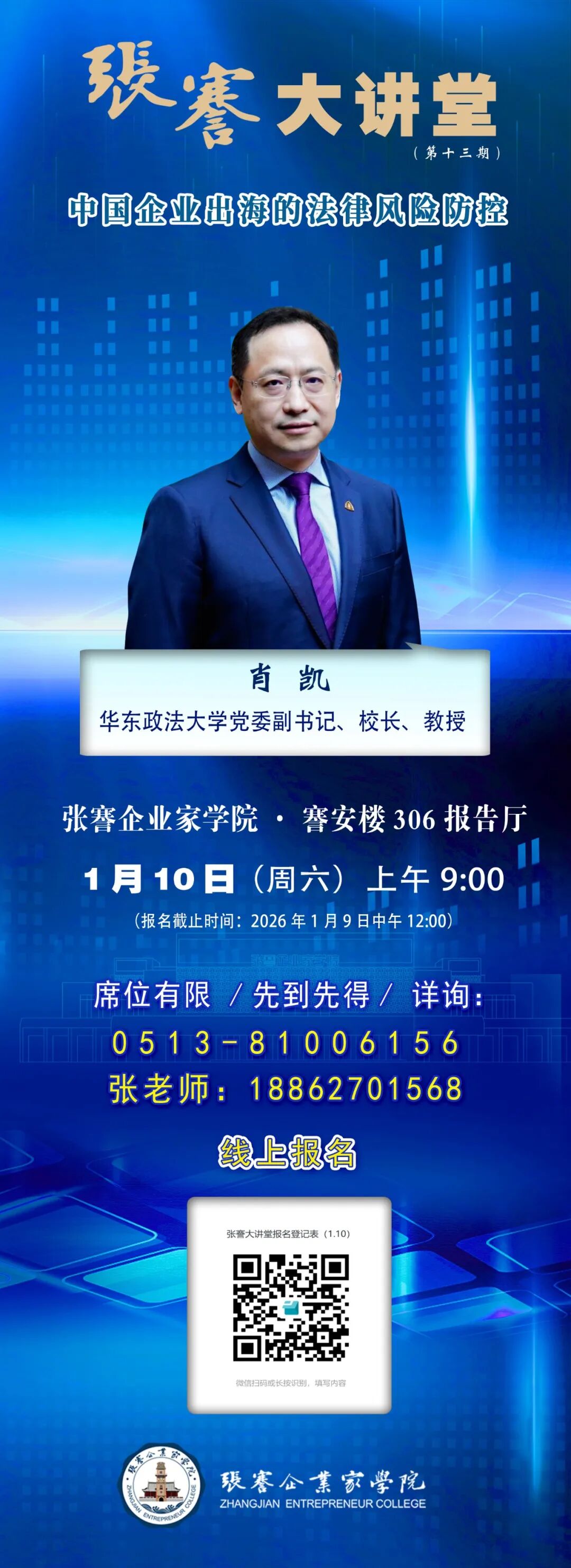 “张謇大讲堂”第十三期即将开讲,“法律罗盘”护航企业出海