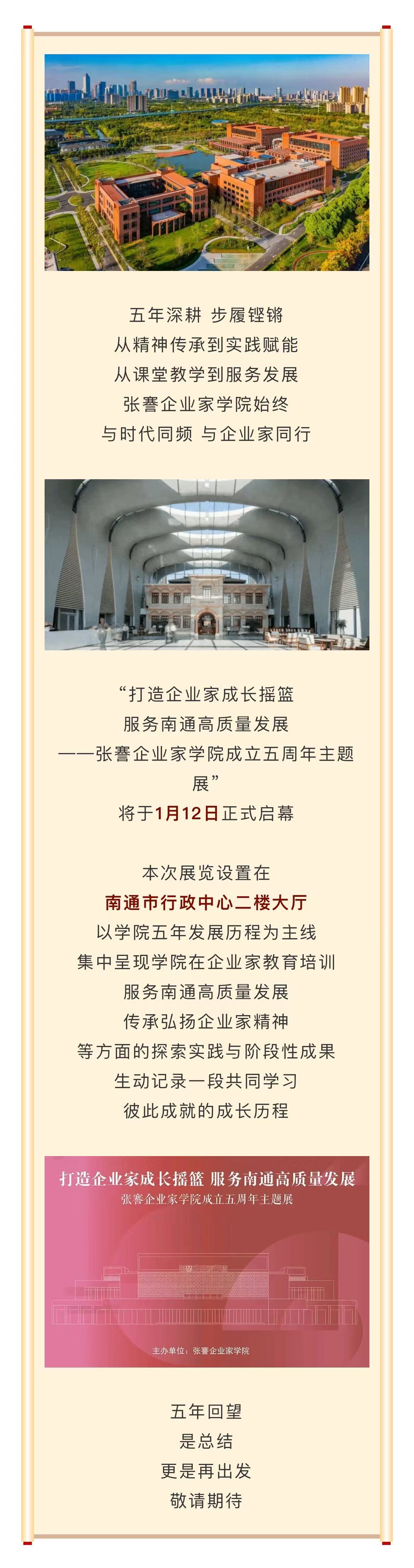 张謇企业家学院成立五周年主题展即将启幕!