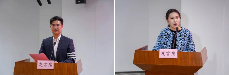江苏综艺股份有限公司董事长兼总经理杨朦、江苏奥蓝工程玻璃有限公司董事长黄丽莎作为学员代表发言。