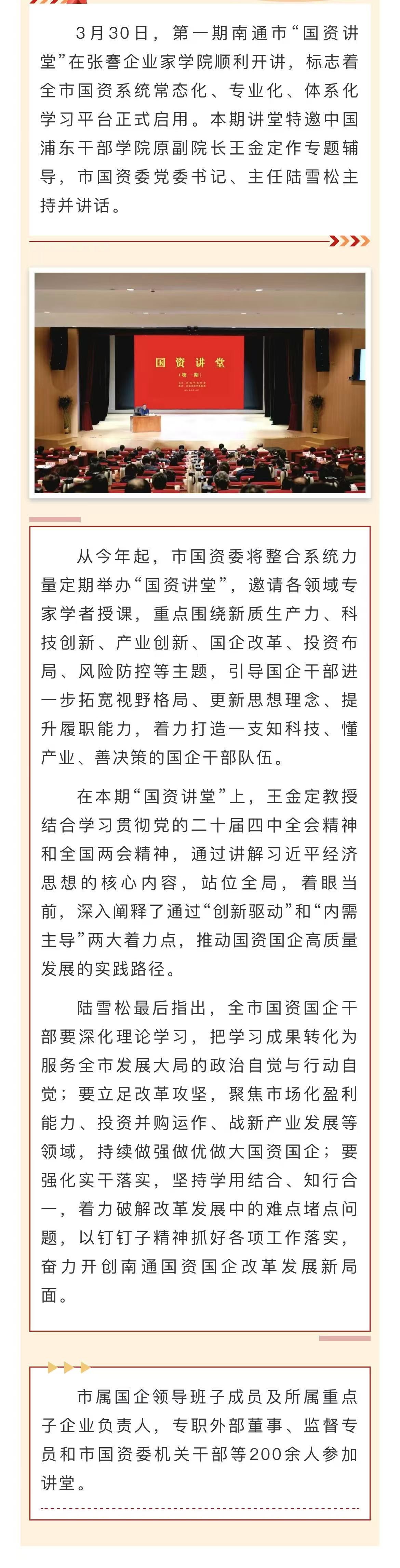 搭建学习平台,赋能国企发展 —— 南通市首期“国资讲堂”在我院开讲