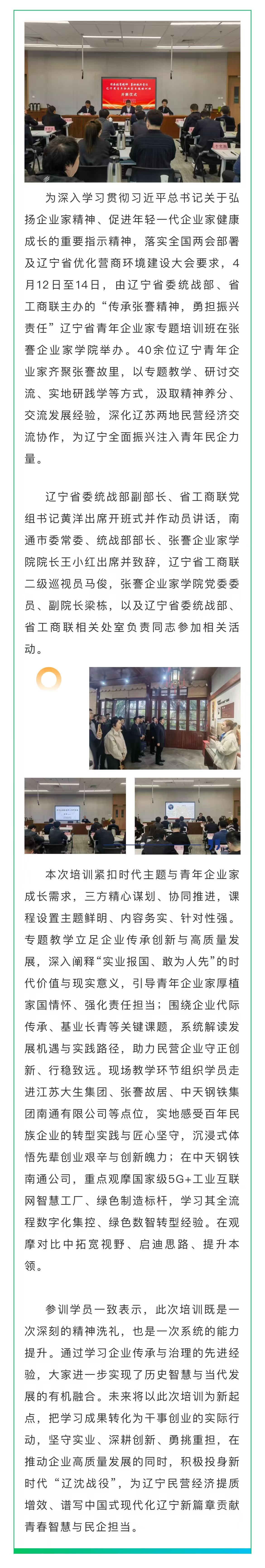 传承先贤精神 勇担振兴责任——辽宁省青年企业家专题培训班在我院成功举办