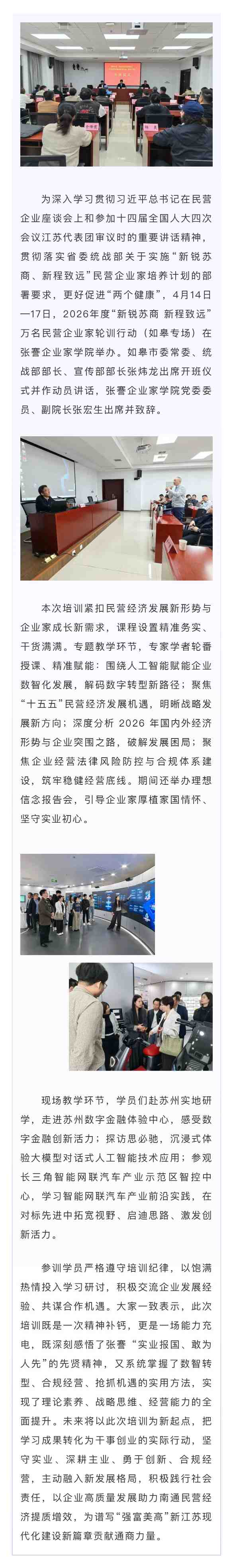 2026年度“新锐苏商 新程致远”——万名民营企业家轮训行动(如皋专场)在张謇企业家学院举办